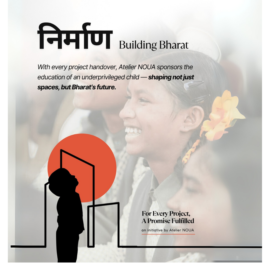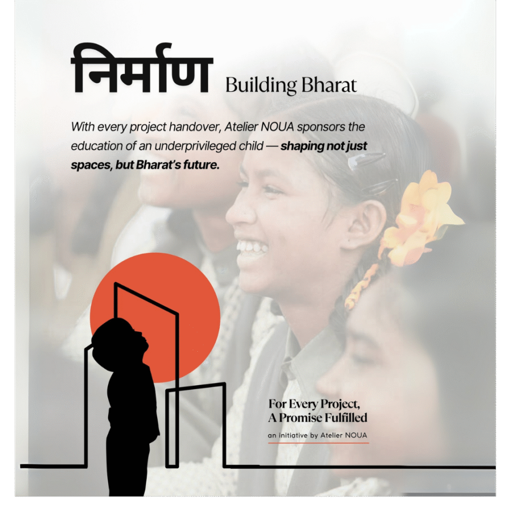 Atelier NOUA proudly launches निर्माण, our heart-led initiative where every project handover sponsors one underprivileged child’s education for a full year.