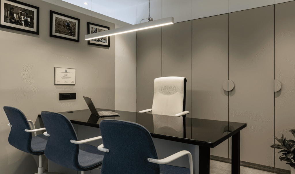 The interior palette is elevated with abstract art, curated artefacts, and layered lighting, delivering a workspace that is as inspiring as it is efficient — a perfect reflection of the practice’s creative ethos.