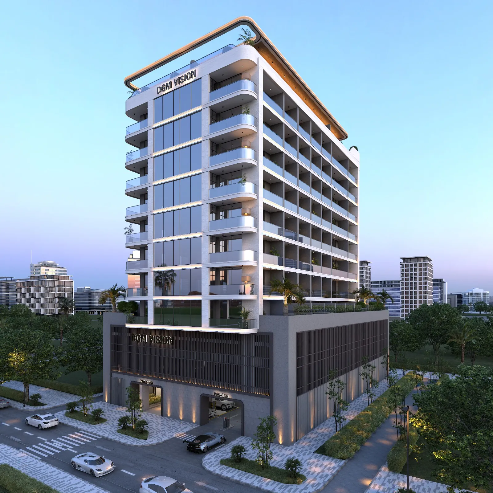 DGM Vision – Pearl is designed to offer a refined urban lifestyle that prioritizes both aesthetics and functionality. Its architecture promotes a sense of rhythm and order, with deep-set balconies that provide shade and privacy while encouraging outdoor living. The building’s thoughtful orientation and material palette ensure thermal comfort and visual clarity, making each home feel calm and composed. Surrounded by curated landscaping and water features, Pearl creates a peaceful micro-environment that enhances everyday living and reflects a commitment to timeless design.