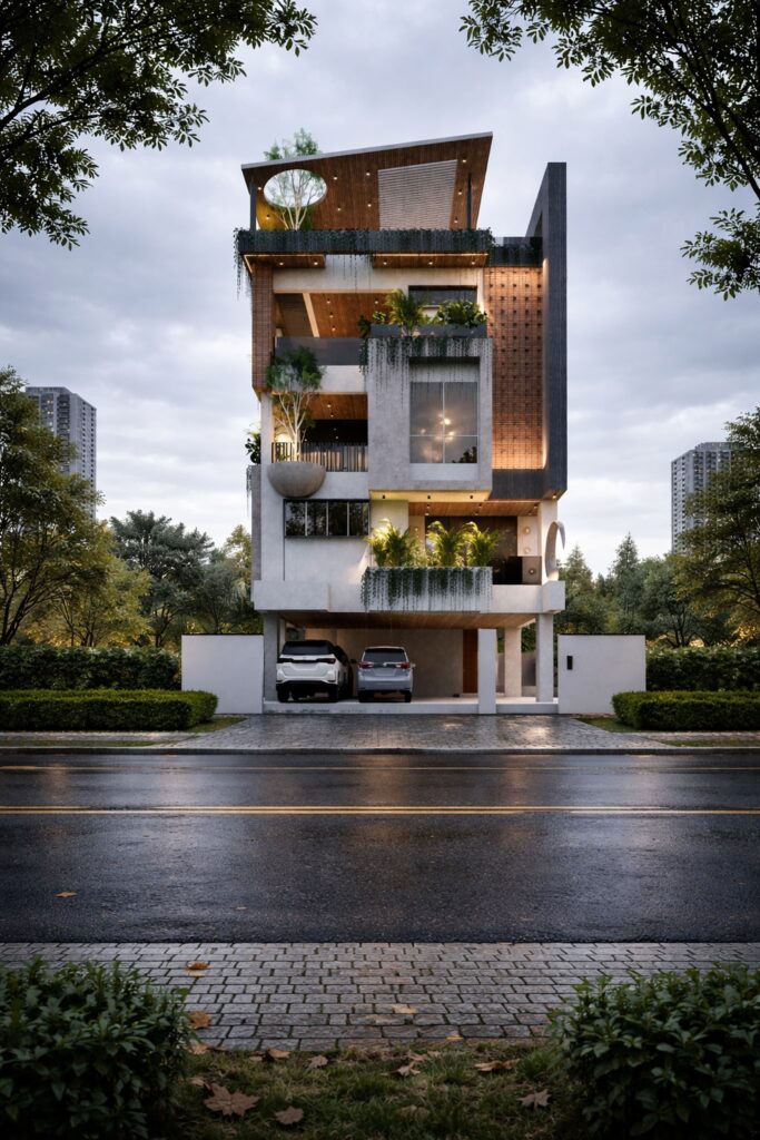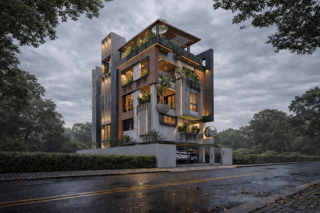 A single requirement from the client to build a sanctuary to disconnect from the city and reconnect with nature led to the conceptualisation of the scale of the weekend villa. A villa that borrows from the traditional roots of the humble farmhouse in a field with modern touches of urban life to create a contemporary haven with large fenestrations to invite the elements inside.