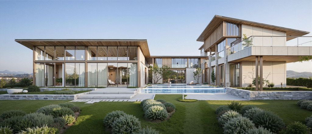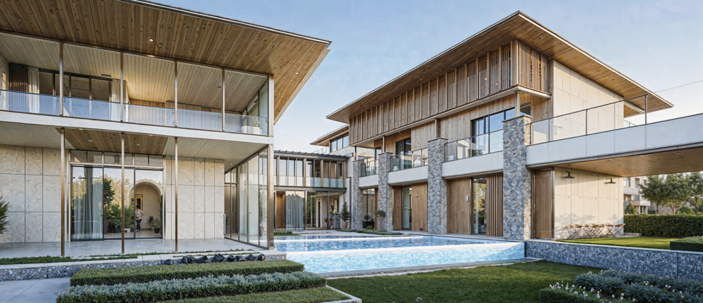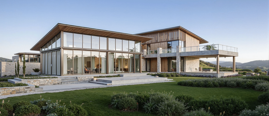 A single requirement from the client to build a sanctuary to disconnect from the city and reconnect with nature led to the conceptualisation of the scale of the weekend villa. A villa that borrows from the traditional roots of the humble farmhouse in a field with modern touches of urban life to create a contemporary haven with large fenestrations to invite the elements inside.