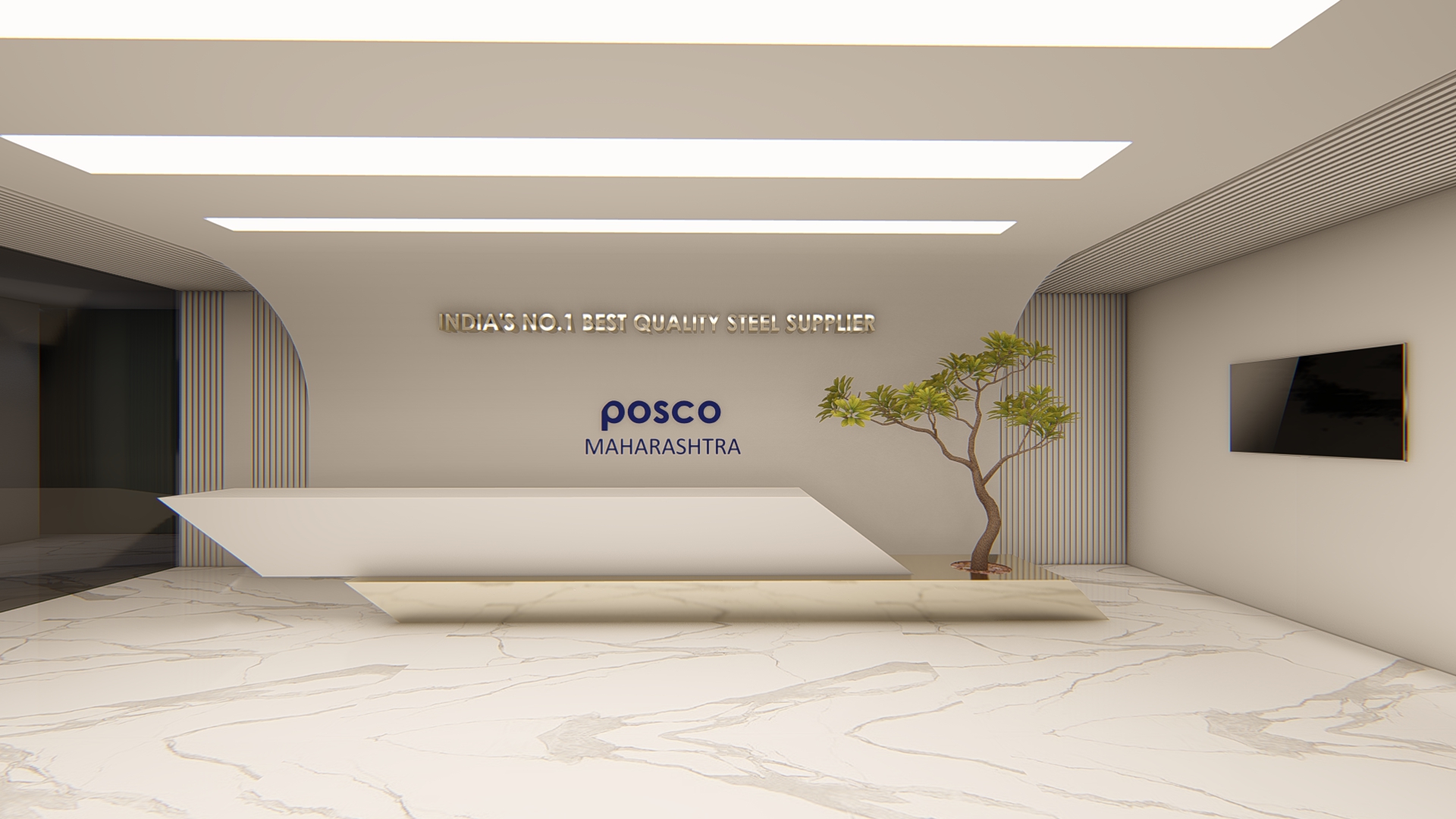 The POSCO Maharashtra Steel Head Office at World Trade Center, Pune, reflects a refined intersection of industrial discipline and contemporary elegance. The design integrates warm textures, muted tones, and sculpted furniture to create an atmosphere of understated sophistication.