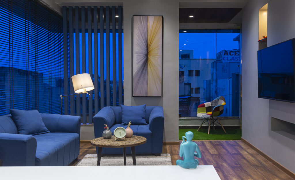 The Solanki Office is designed as a bold statement of identity and order. The cabin interiors employ a controlled material palette and structured color zoning to convey focus, authority, and sophistication.