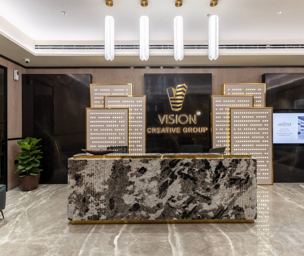 The Vision Group Head Office at MSR Capital, Pune, is an exquisite blend of corporate functionality and high-end aesthetics. Every element — from the meticulously detailed reception zone to the executive suites and collaborative spaces — reflects sophistication and precision. The design harmonizes contemporary form with timeless materials, delivering a workspace that not only enhances productivity but also embodies the stature of the brand. This office is more than just a place to work — it’s an experience of refined ambition and enduring elegance.